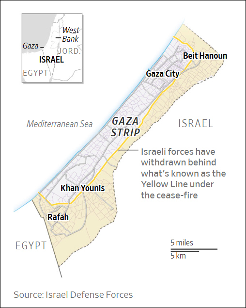 根据加沙停火第一阶段协议相关条款,停火生效后,以军后撤至所谓的“黄线”,但仍然控制加沙地带53%的地区。《华尔街日报》